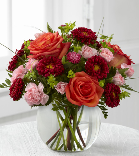 Description: The Color Rush Bouquet is an unforgettable way to join in your special recipient's most memorable moments. A gorgeous array of orange roses and sweetly pink mini carnations are brought together with this beautiful mixture to create a wonderfully warm and colorful wish of loving kindness.